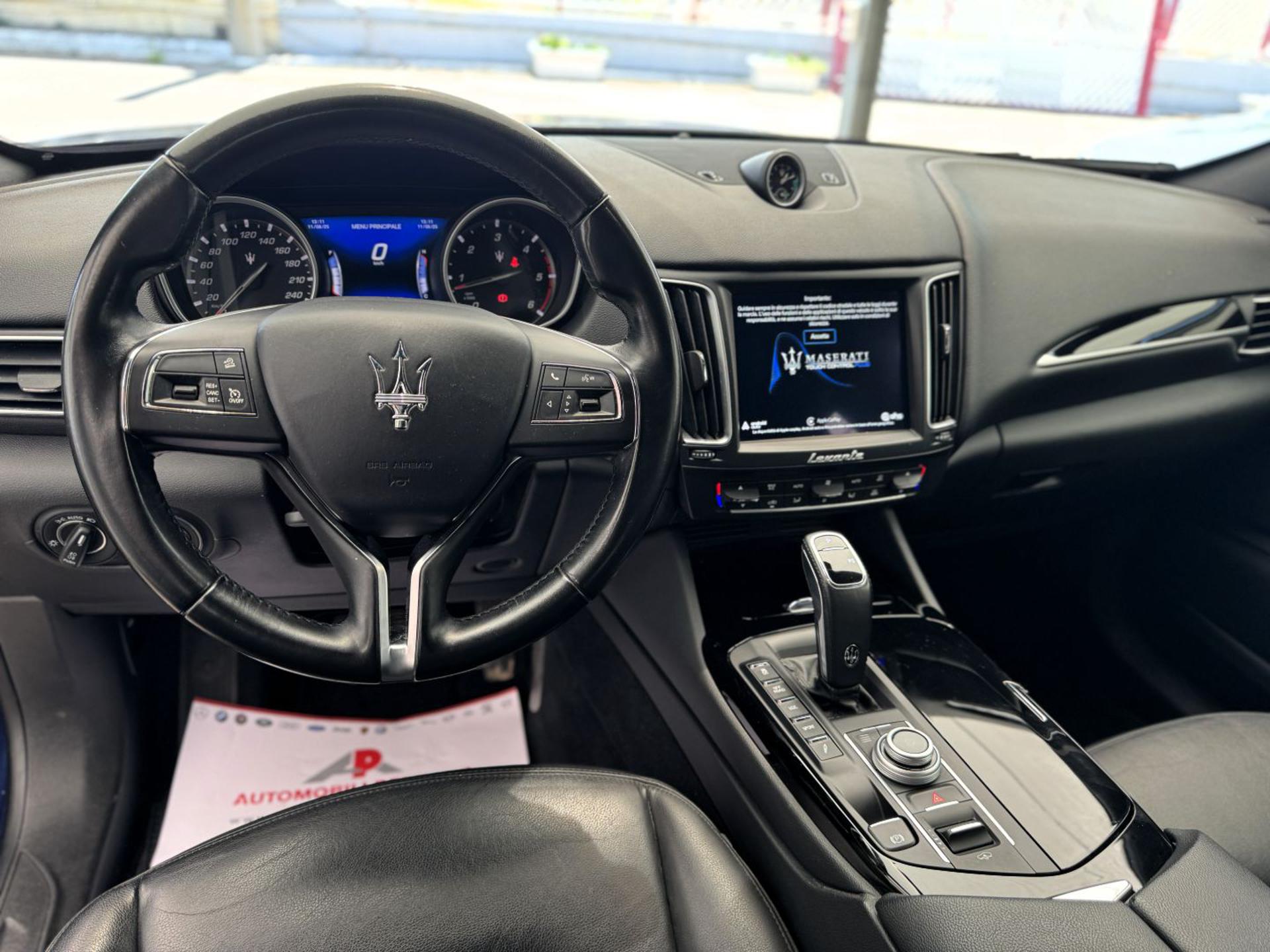 Maserati Levante 3.0 V6 Diesel 250cv Q4. L'auto è in ottime condizioni e non necessita di alcun intervento. Vettura ufficiale italiana. Chilometraggio certificato con manutenzione regolarmente effettuata. Internamente l'abitacolo è pulito e ben tenuto, non presenta segni di usura. Carrozzeria priva di graffi. L'AUTO NON E' ANCORA DISPONIBILE PRESSO LA NOSTRA SEDE. SI PREGA PERTANTO DI CONTATTARE TELEFONICAMENTE PER FISSARE UN APPUNTAMENTO L'auto è dotata dei seguenti optionals: - Sistema di Infotainement con display touchscreen - Navigatore cartografico 3D - Sistema Apple Car Play / Android Auto - Interfaccia vivavoce Bluetooth - USB - Sedili in pelle totale pieno fiore di colore nero - Sedili elettrici con supp. lombare - Modanature interne nero lacca - Orologio analogico - Sistema Key-Less Entry - Volante in pelle multifunzione con Cruise Control - Fari full led con led diurni - Controllo elettronico del differenziale con sistema Off Road - Sospensioni Pneumatiche con regolazione assetto di guida e altezza da terra - Sensori parcheggio ant. e post. - Cambio automatico 8 marce - Cerchi in lega da 19" bruniti - Antifurto Immobilizer Inviamo foto ed ulteriori dettagli su richiesta. Possibilità di permuta con auto di nostro interesse. Possibilità di finanziamento.
