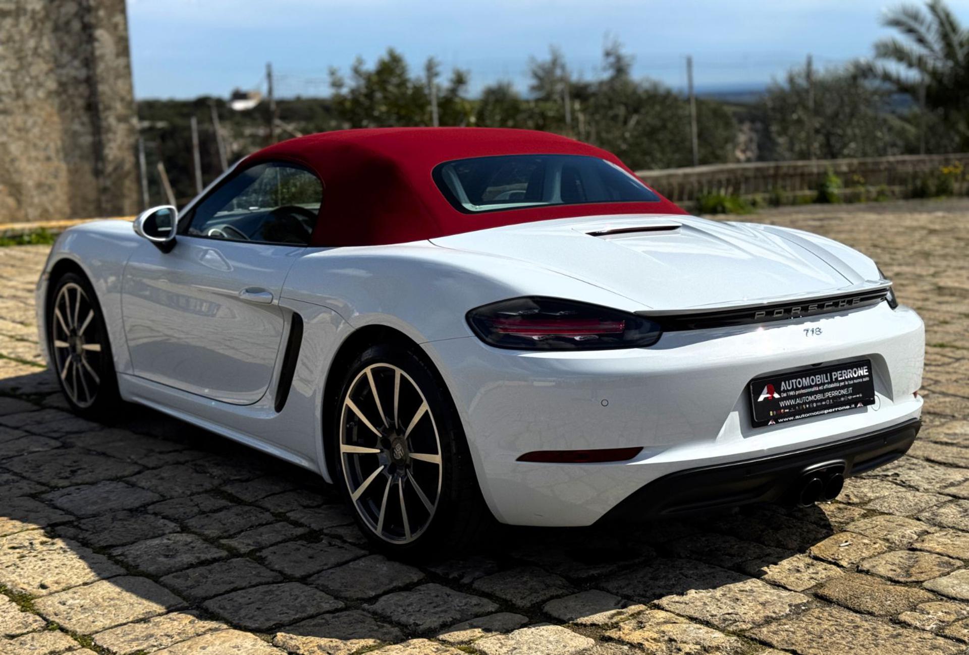PORSCHE 718 BOXSTER 2.0 PDK 300cv Un'auto che coniuga un'esperienza di guida avvincente ad design unico e senza tempo. Un connubio perfetto per chi desidera scoprire il mondo delle auto sportive e affrontare nuove emozioni alla guida. Questa che vi proponiamo è un'auto in ottime condizioni e con chilometraggio certificato Porsche. Internamente l'abitacolo non presenta alcun segno di usura mentre la carrozzeria è perfetta. Ha un abbinamento cromatico molto particolare ed esclusivo che tende ad esaltare le linee sinuose ed accattivanti di questa bellissima Boxster. Tocco di classe la capote in Rosso bordeaux. Inoltre l'auto è dotata di diversi optionals come: -Sedili in pelle totale bicolore neri/rossi -Sistema PCM con Interfaccia Bluetooth -Retrocamera di parcheggio -Cambio Automatico/Sequenziale PDK 7 marce -Volante sportivo con Paddles -Cruise Control -Fari Full Led -Terminali di Scarico Sportivo in nero satinato -Sensori di parcheggio anteriori e posteriori -Cerchi in lega da 20" diamantati -Antifurto Immobilizer Fatturabile IVA deducibile Possibilità di Garanzia Porsche APPROVED e 111 Punti Possibilità di estensione di garanzia a 24/36/48 mesi. Possibilità di furto e incendio con valore di fattura. Possibilità di finanziamento in comode rate a tasso agevolato ---- Vi invitiamo anche a visionare il nostro sito web aggiornato in tempo reale: WWW.AUTOMOBILIPERRONE.IT Troverete il nostro PARCO AUTO al completo con descrizioni accurate e foto più dettagliate. Inoltre potrete scoprire i notevoli servizi che quotidianamente offriamo ai nostri clienti!! Tra cui: - Disbrigo immediato, grazie alla nostra agenzia, di tutte le pratiche automobilistiche; - Pagamento personalizzato tramite finanziamento a tasso agevolato per venire incontro alle vostre esigenze; - Controlli di verifica conformità e tagliando preconsegna della vettura; - Assistenza postvendita con garanzia 12 mesi - Consulenza fiscale per soggetti IVA e disbrigo pratiche volte ad ottenere l'agevolazione dell'IVA al 4% a portatori di handicap (Legge 104/92 e succ. mod. ed integrazioni); - Consulenza assicurativa; - Consulenza per l'installazione di accessori after market;