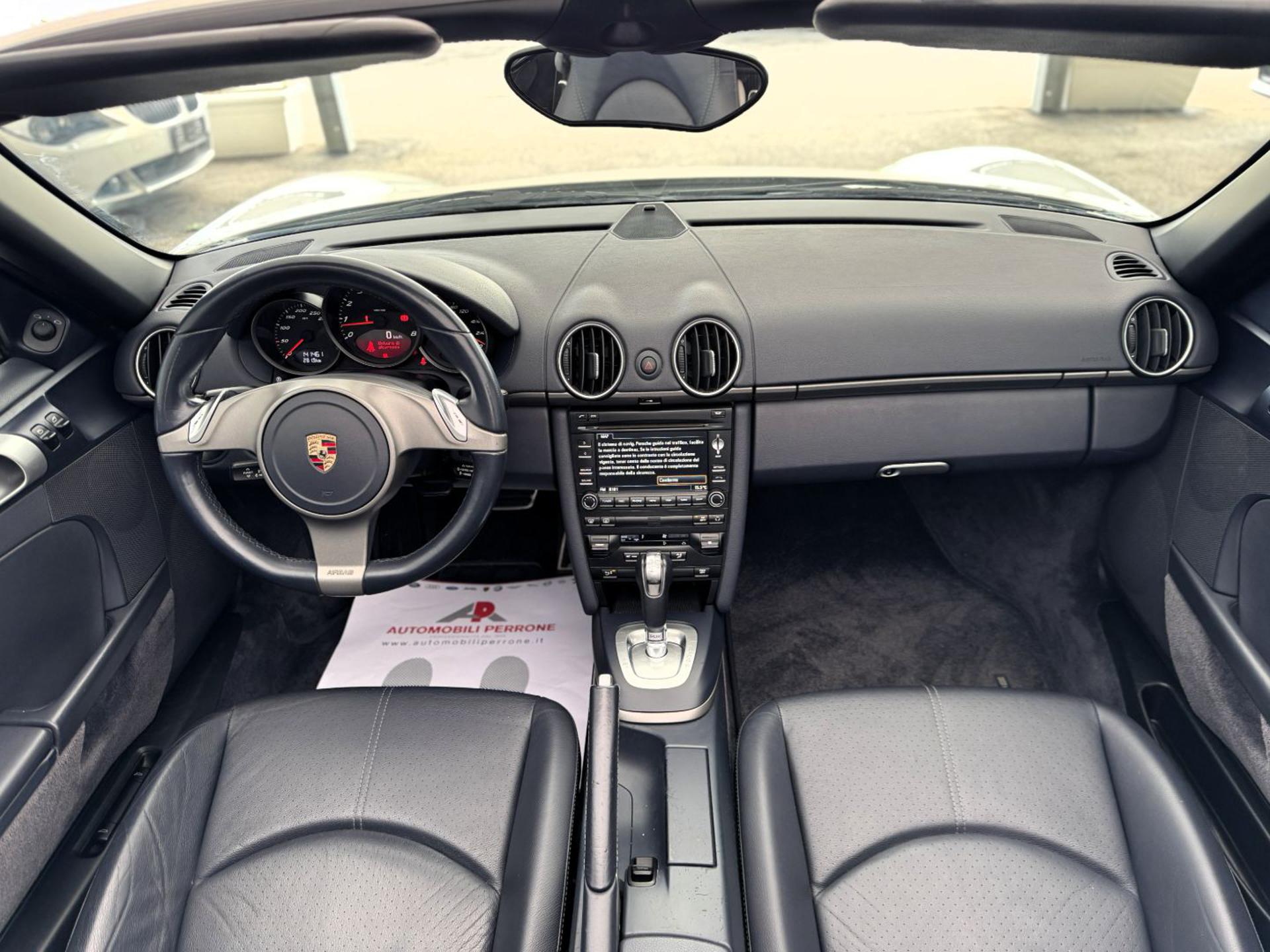 Splendida Porsche Boxster 2.9 256cv PDK Molto elegante nel suo bianco ivory con capote e interno in pelle blu. Chilometraggio certificato con manutenzione regolarmente eseguita in officina Porsche. Dotata di: - Fari Bi-xeno con led diurni - Sistema di Navigazione Sat. - Interfaccia vivavoce Bluetooth - Climatronic - Ingresso USB+ Aux - Sedili in pelle totale blu - Cambio automatico PDK 7 marce - Capote elettrica con apertura in movimento - Cerchi in lega da 18" - Sensori di parcheggio post. - Antifurto immobilizer Possibilità di estensione di garanzia a 24/36/48 mesi. Possibilità di furto e incendio con valore di fattura. Possibilità di finanziamento in comode rate a tasso agevolato. ---- Vi invitiamo anche a visionare il nostro sito web aggiornato in tempo reale: WWW.AUTOMOBILIPERRONE.IT Troverete il nostro PARCO AUTO al completo con descrizioni accurate e foto più dettagliate. Inoltre potrete scoprire i notevoli servizi che quotidianamente offriamo ai nostri clienti!! Tra cui: - Disbrigo immediato, grazie alla nostra agenzia, di tutte le pratiche automobilistiche; - Pagamento personalizzato tramite finanziamento a tasso agevolato per venire incontro alle vostre esigenze; - Controlli di verifica conformità e tagliando preconsegna della vettura; - Assistenza postvendita con garanzia 12 mesi - Consulenza fiscale per soggetti IVA e disbrigo pratiche volte ad ottenere l'agevolazione dell'IVA al 4% a portatori di handicap (Legge 104/92 e succ. mod. ed integrazioni); - Consulenza assicurativa; - Consulenza per l'installazione di accessori after market;